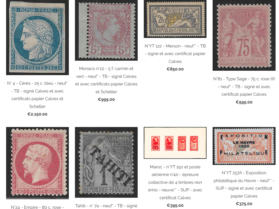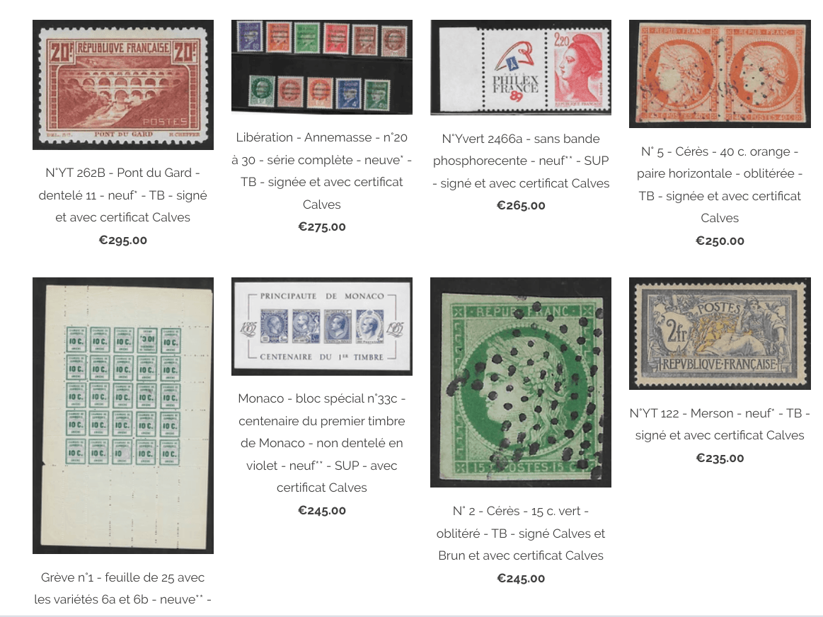 Les ventes flash de la maison Calves sont des ventes à prix particulièrement attractifs pour une durée limitée. Le même soin est apporté à la sélection des timbres figurant dans ces ventes qu'à ceux proposés dans nos ventes habituelles.