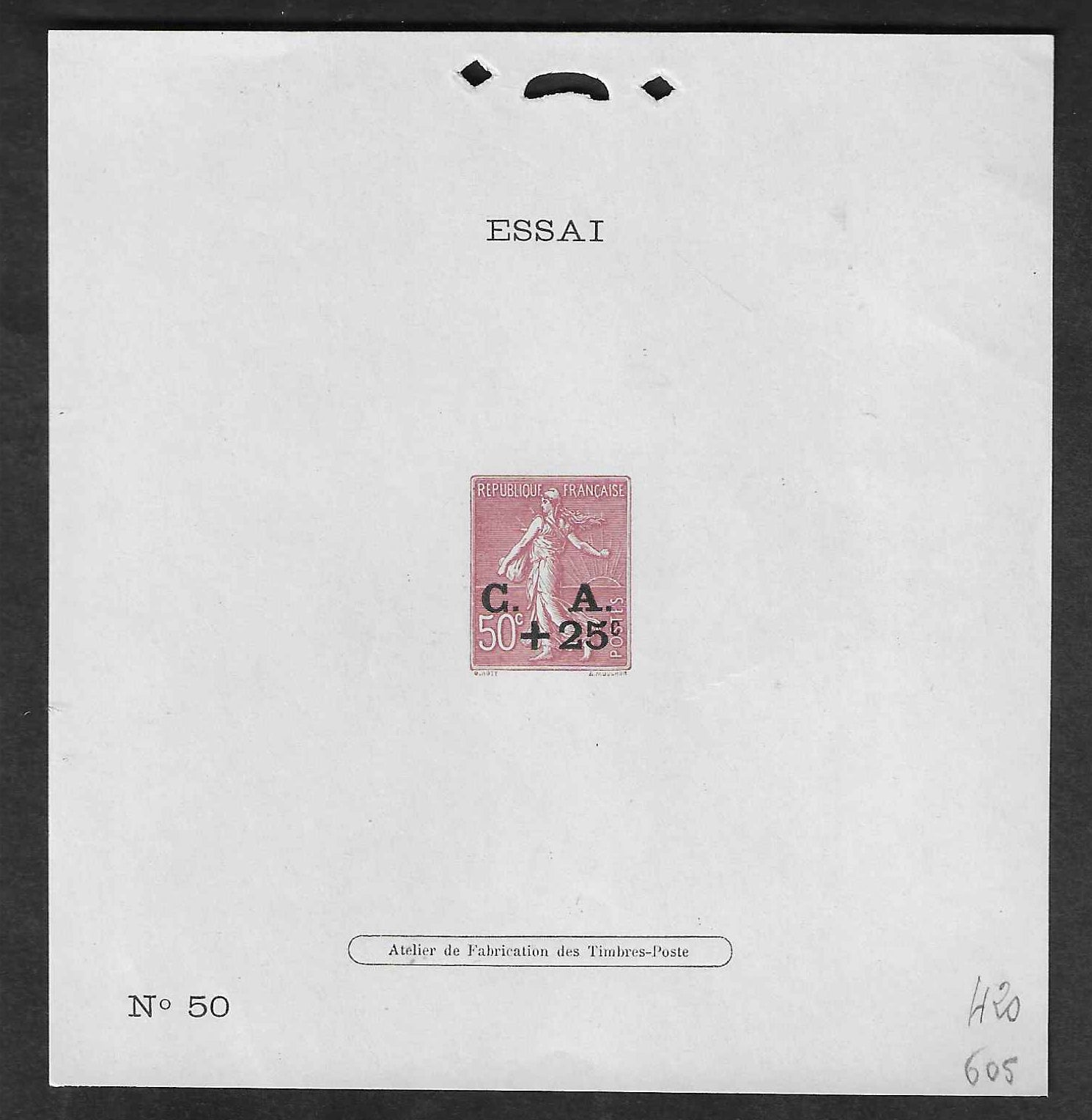 Très bel exemplaire de l'épreuve d'essai du surcharge du n°247. Neuve sans gomme telle qu'émise. Epreuve n°50. Cote Mayer 2021 = 550 €