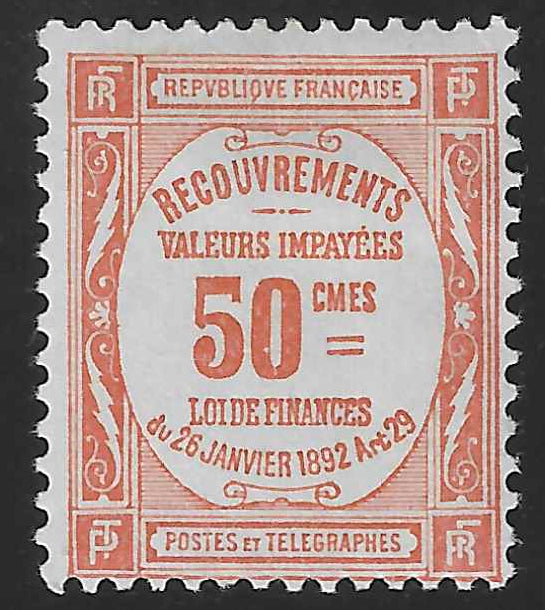 Très bel exemplaire du timbre-taxe n°47. 50 c. rouge. Neuf avec gomme d'origine, trace de charnière. Cote Yvert et Tellier 2026 = 450 €.