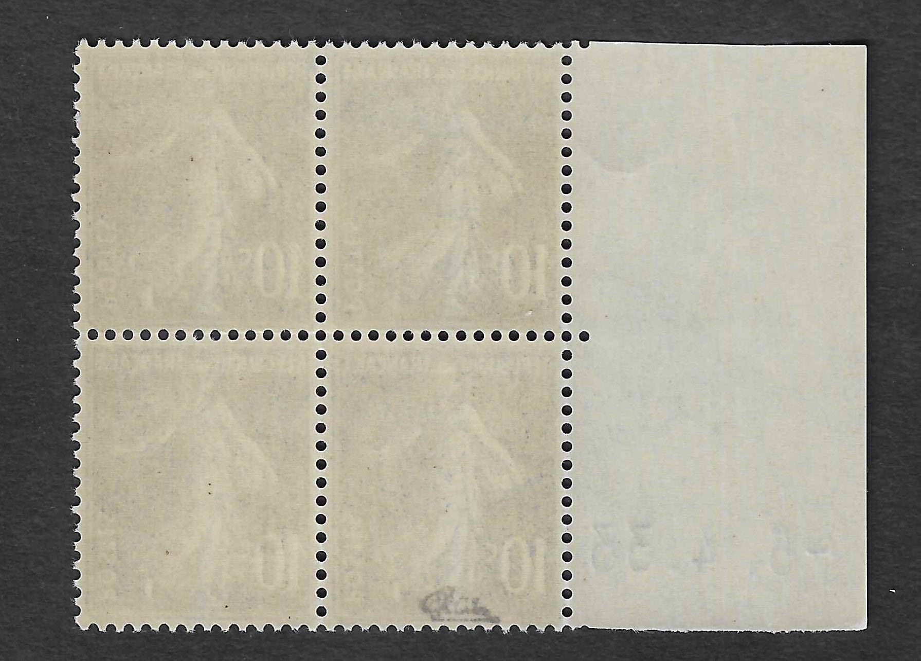 N°YT 279 - Semeuse - bloc de 4 exemplaires avec coin daté à gauche - neuf** - SUP - signé Calves