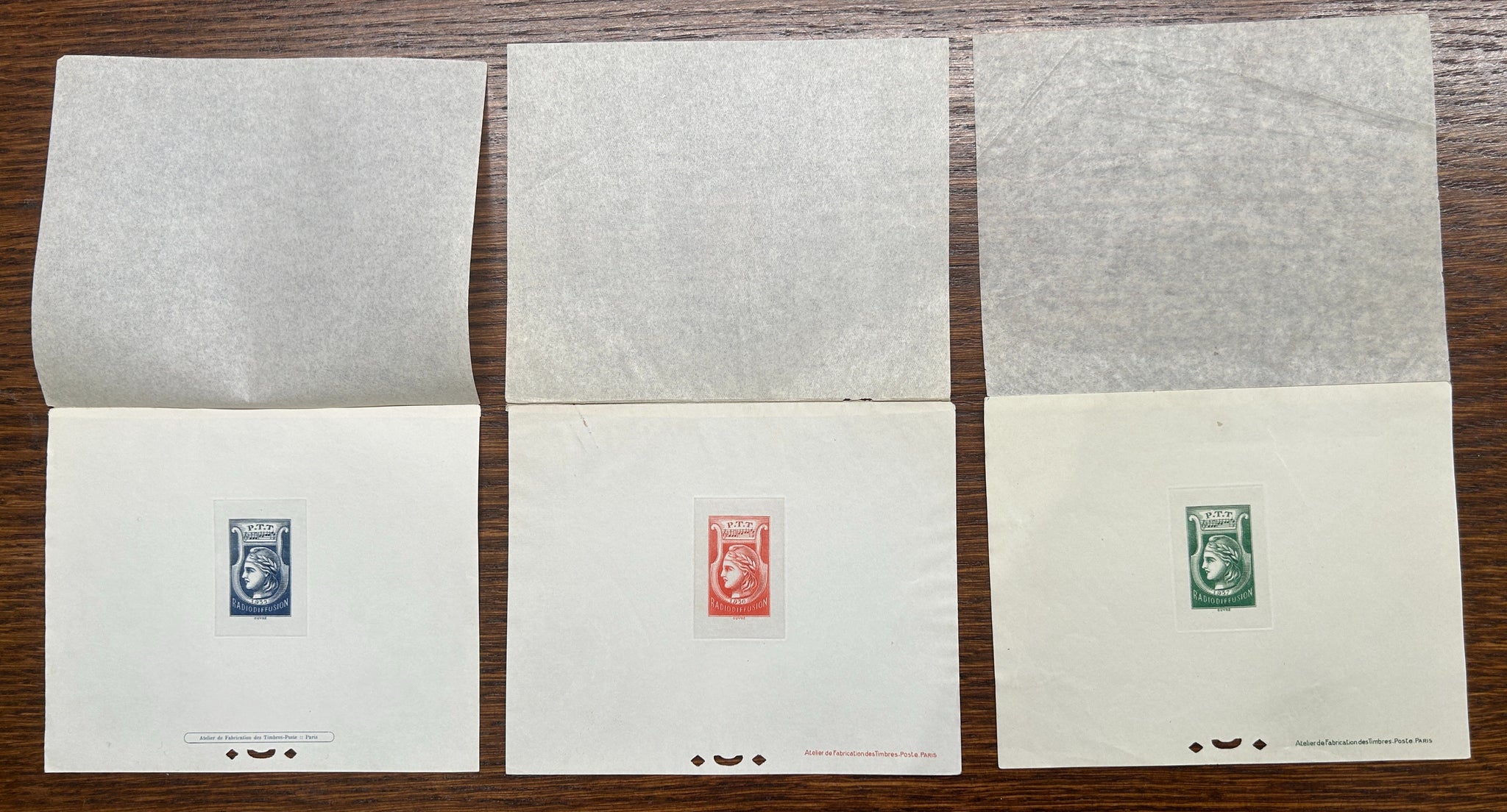 Très beaux exemplaires des épreuves de luxe timbres de radiodiffusion n°1 à 3. Neuves sans gomme telles qu'émises. Quelques légers défauts, mais belle qualité d'ensemble. Rares.Cote Mayer 2021 = 540€.