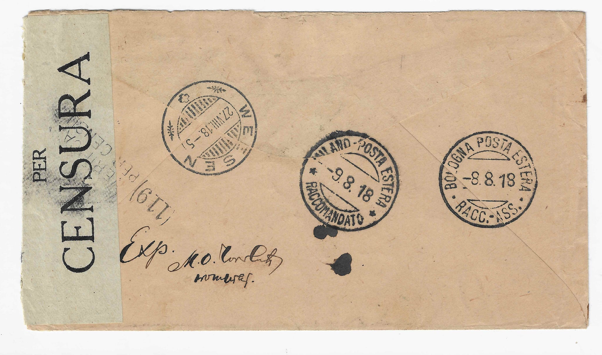 Très bel exemplaire du timbre des Postes serbes n°10a - Merson 50 c. brun et gris, papier GC. Oblitéré sur lettre recommandée avec cachet à date serbe du 19 juillet 1918 pour Weesen (Suisse). Griffe POSTES SERBES hors timbre. Différentes marques de censure serbes et italiennes. Cachet d'arrivée du 27 août 1918 de Weesen au verso. Lettre issue de l'archive Vögeli. Cote Mayer 2021 = 425 €.