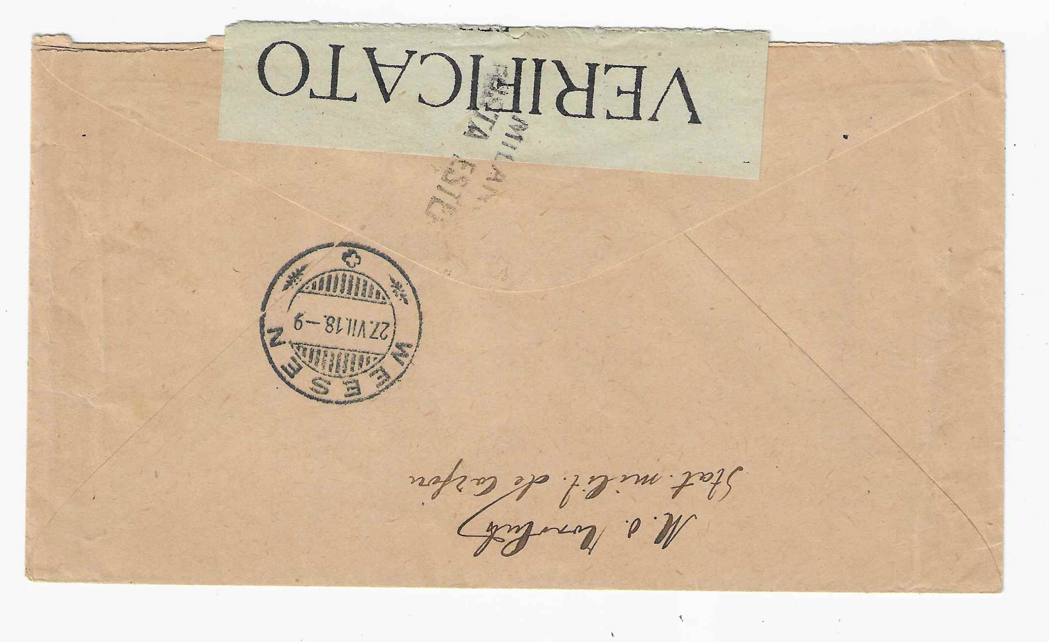 Très bel exemplaire du timbres des Postes serbes n°6 - Semeuse 25 c. bleu. Oblitéré sur lettre avec cachet à date serbe du 27 juin 1918 pour Weesen (Suisse). Griffe POSTES SERBES hors timbreCachet d'arrivée de Weesen du 27 juillet 1918. Lettre issue de l'archive Vögeli.  Cote Mayer 2021 = 425.