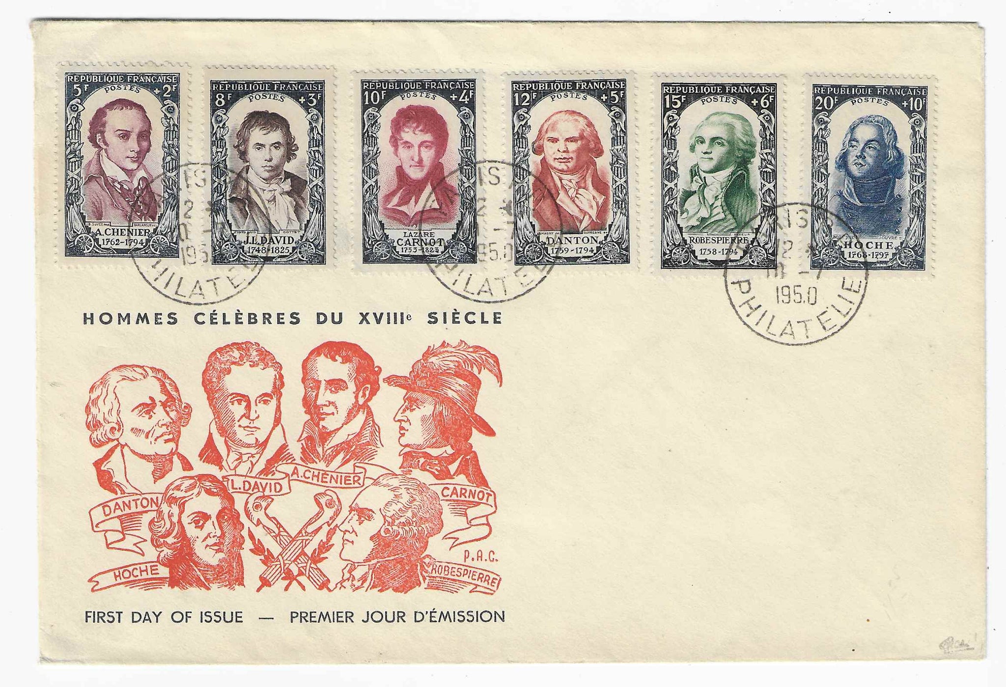 Très belle enveloppe premier jour avec la série complète des n°867 à 872. Révolutionnaires. Cote Yvert et Tellier 2026 = 1 000 €.