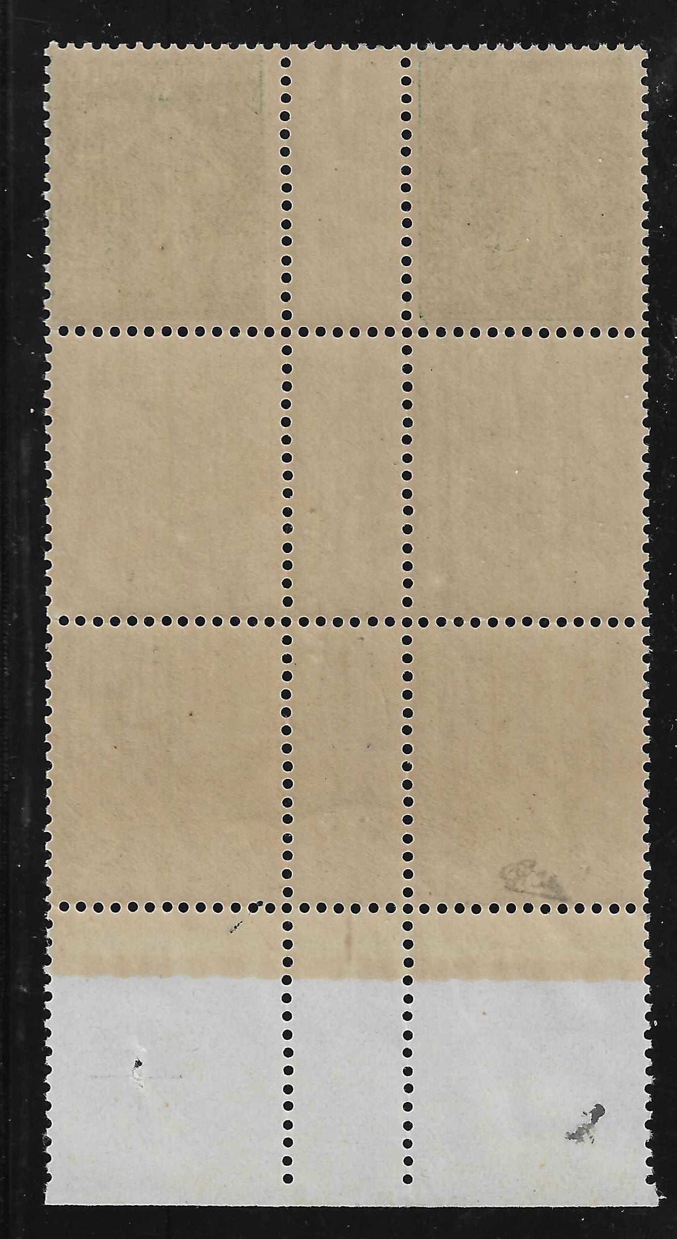 Superbes exemplaires du n°137. Issus d'une feuille de timbres de roulette non confectionnée. Bloc de 6 exemplaires avec 4 exemplaires non imprimés. Neufs avec gomme d'origine sans charnière. Bord de feuille et interpanneau. Belle présentation. Peu fréquent.