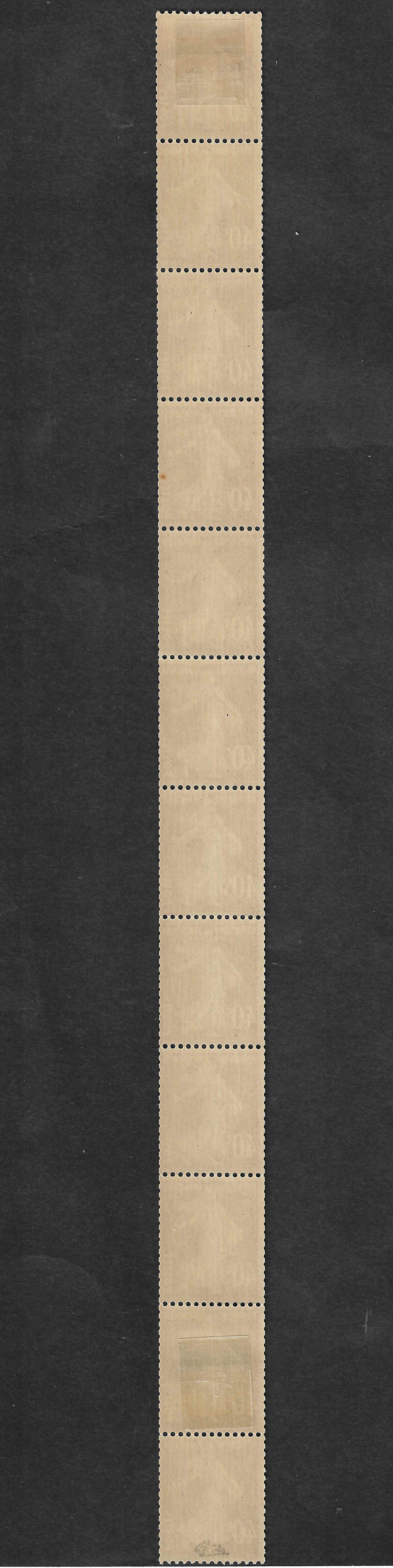 N°YT 236 - issu de roulette - bande verticale de 11 exemplaires - neuve*/** - TB - signée et avec certificat Calves