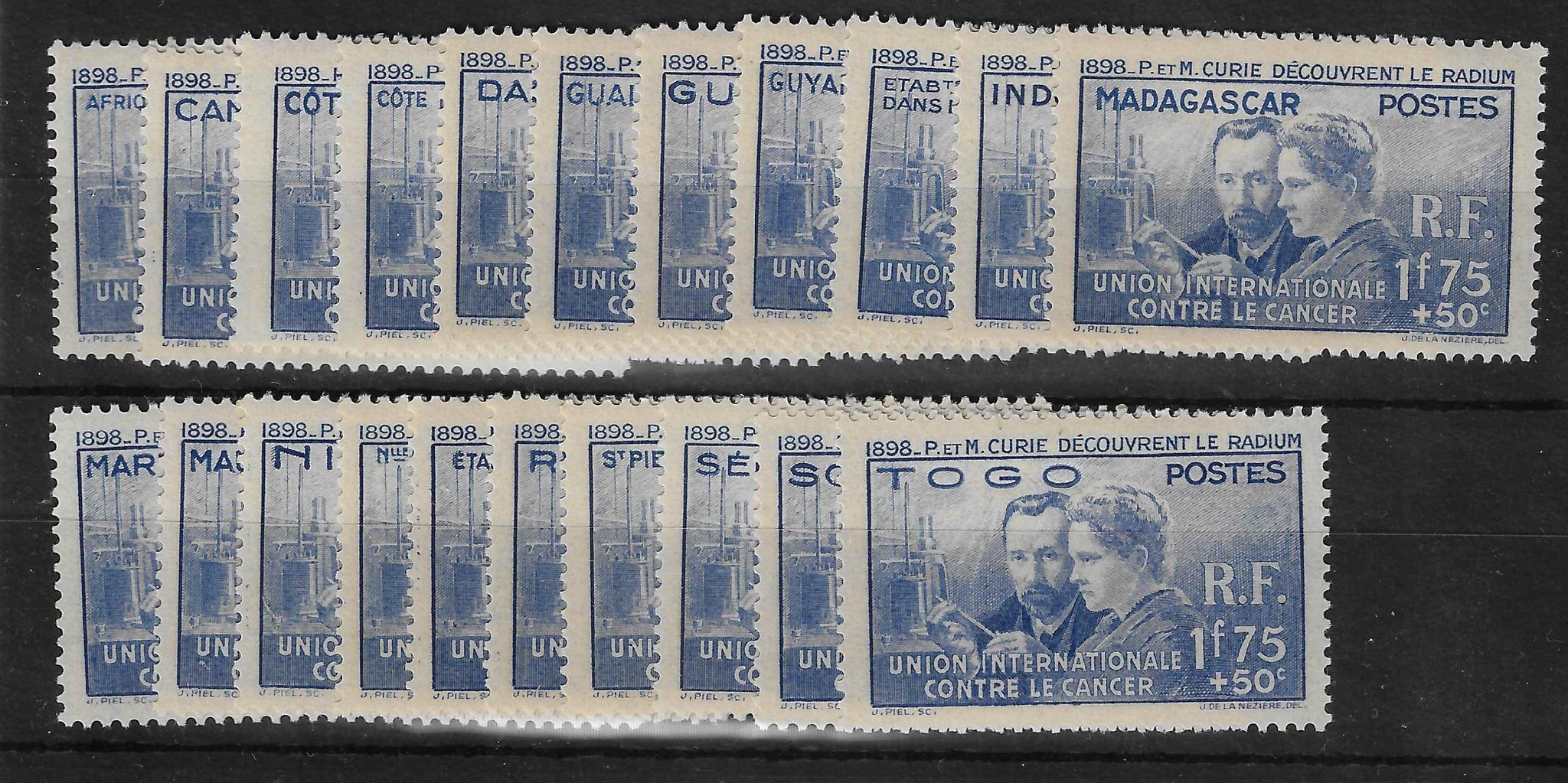 Pierre et Marie Curie. Les 21 valeurs. Neufs avec gomme d'origine sans charnière. Superbes. Cote Yvert et Tellier 2023 = 642 €.