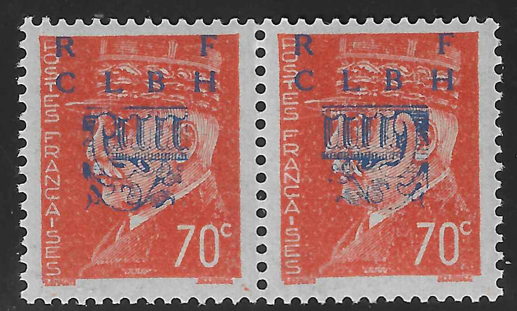 Superbes exemplaires des timbres de la Libération de Decazeville n°3. Type I et type II se tenant. Neufs avec gomme d'origine sans charnière. Cote Mayer 2021 = 1 440 €.