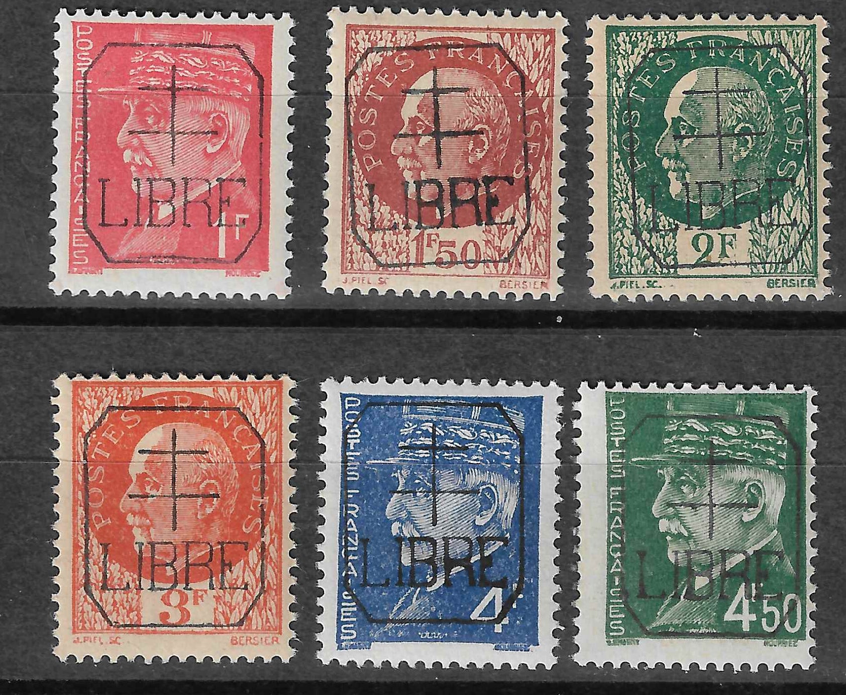 Superbes exemplaires des timbres de la libération de Measnes. Mayer n°1 à 6. Neufs avec gomme d'origine sans charnière. Cote Mayer 2021 = 720 €.