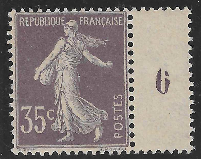 Superbe exemplaire du timbre de France n°136 - Semeuse fond plein sans sol, à inscription maigres. 35 c. violet clair (IIA). Neuf avec gomme sans charnière. Bon centrage, tenant à millésime. Cote Yvert et Tellier 2026 = 450 €.