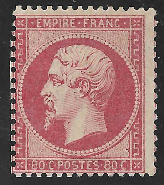 Très bel exemplaire du timbre de France n°24 - Empire - 80 c. rose. Neuf avec gomme d'origine, trace de charnière. Très frais. Cote Yvert et Tellier 2026 = 2 550 €.