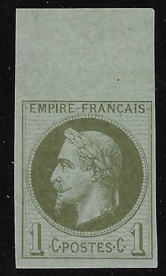 Superbe exemplaire  du timbre de France n°25c. Impression fine Rothschild, non dentelé. Neuf avec gomme d'origine, légère trace de charnière. Bord de feuille. Rare. Cote Yvert et Tellier 2026 = 2 250 .