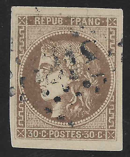 Superbe exemplaire du timbre de France n°47. Oblitéré. Grandes marges. Cote Yvert et Tellier 2025 = 280 €.