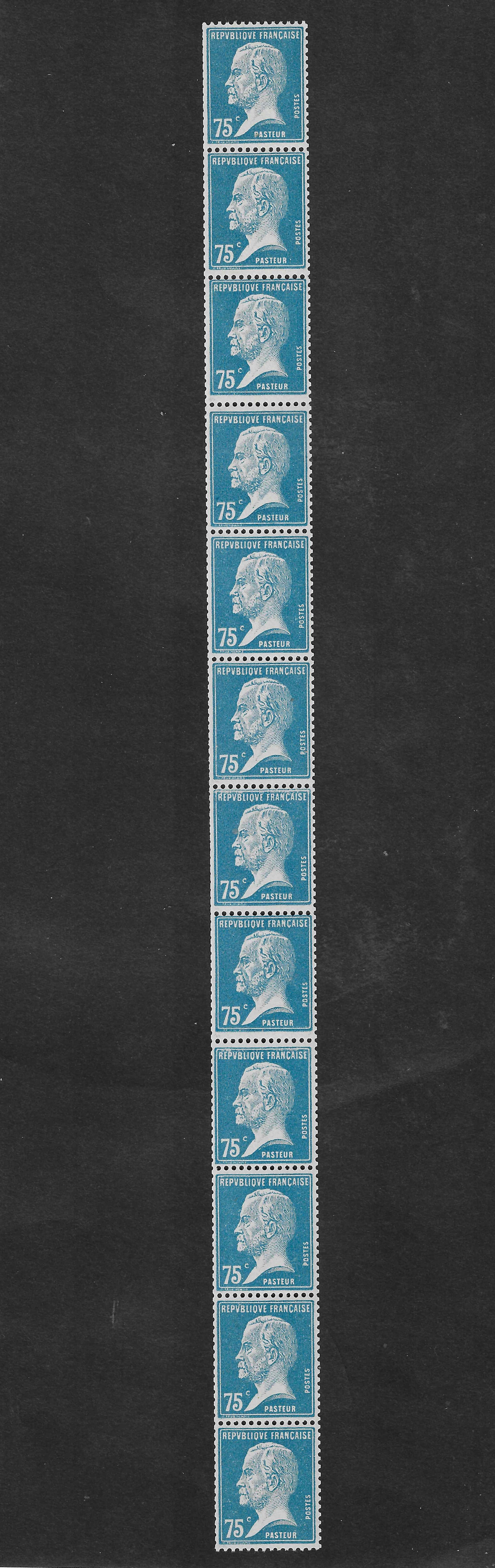Superbes exemplaires du n°177. Pasteur, issu de roulette. Bande verticale de 12 exemplaires. Neufs avec gomme d'origine sans charnière. Rare. Cote Yvert et Tellier 2026 = 5 000 € (roulette n°35 de 6 exemplaires x 2).