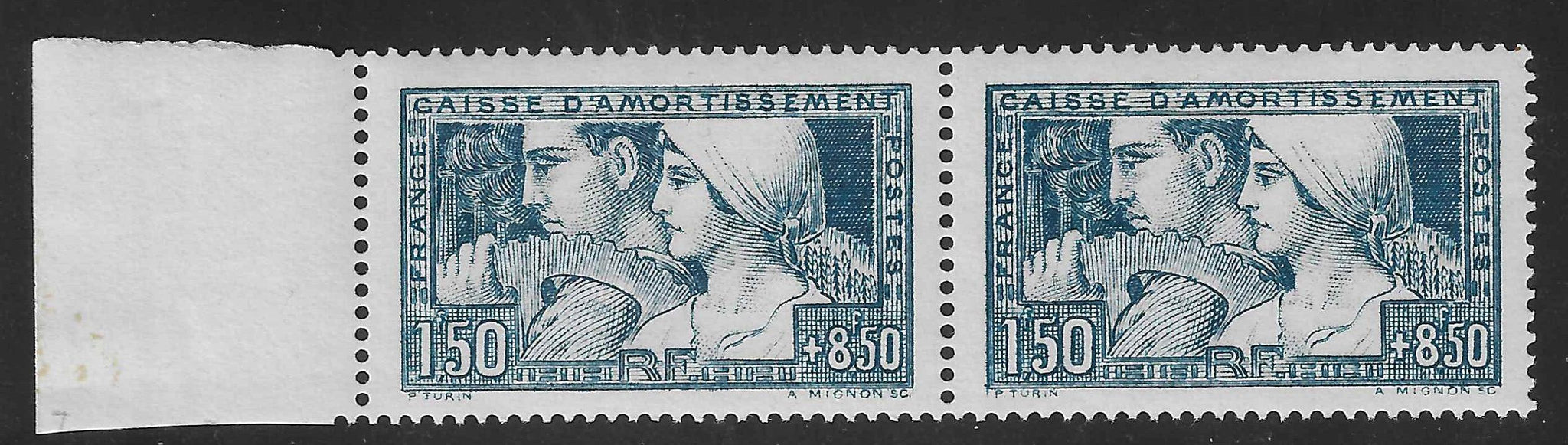 Superbes exemplaires des timbres de France n°252 et 252b - Travail - Etat I et état III se tenant. Neufs avec gomme d'origine sans charnière. Bord de feuille. Cote Yvert et Tellier 2023 = 520 €.