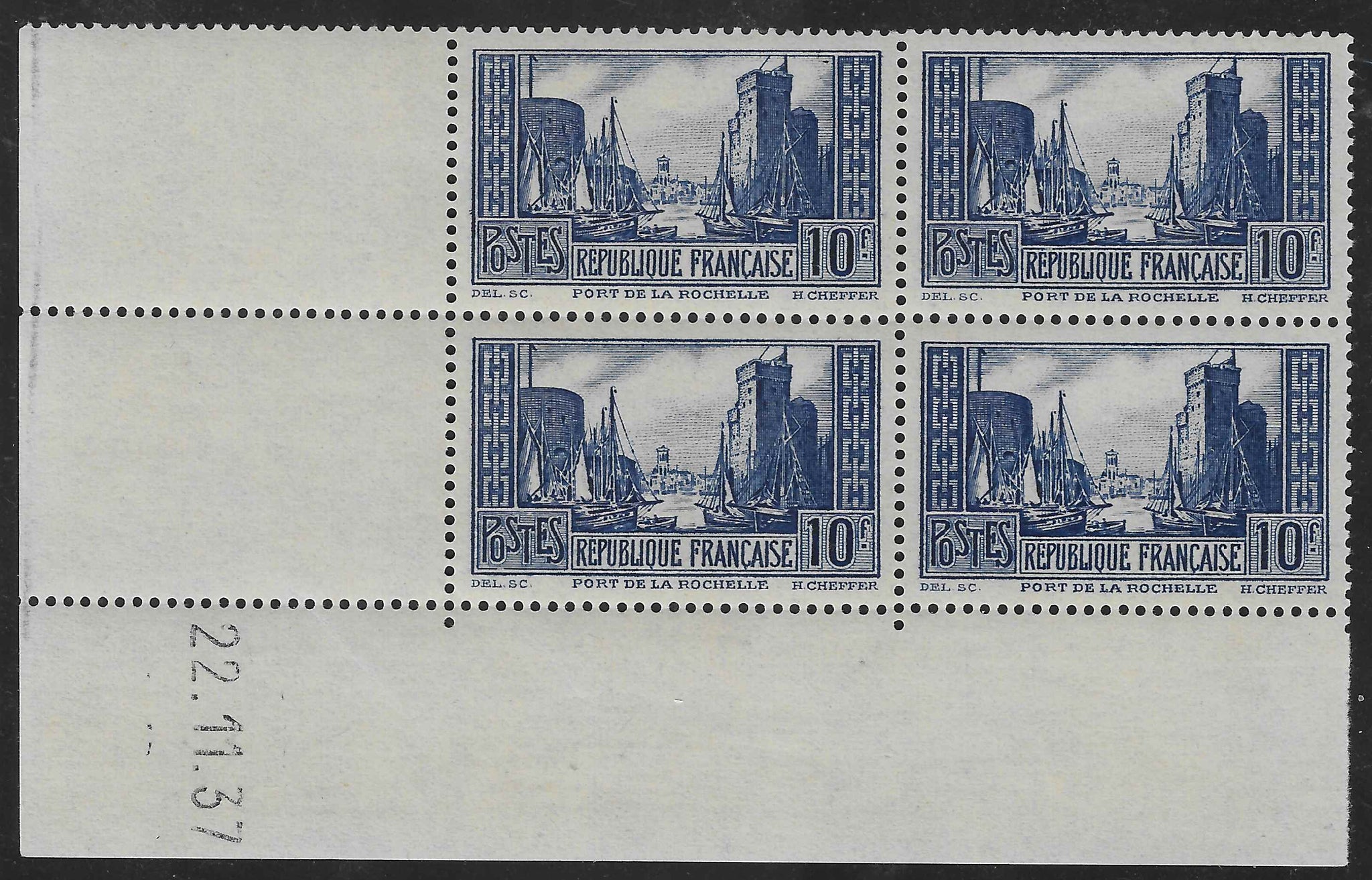 Superbes exemplaires des timbres de France n°261 - La Rochelle - type III - bloc de 4 exemplaires coin daté. Neufs avec gomme d'origine sans charnière. Cote Yvert et Tellier 2025 = 875 €.