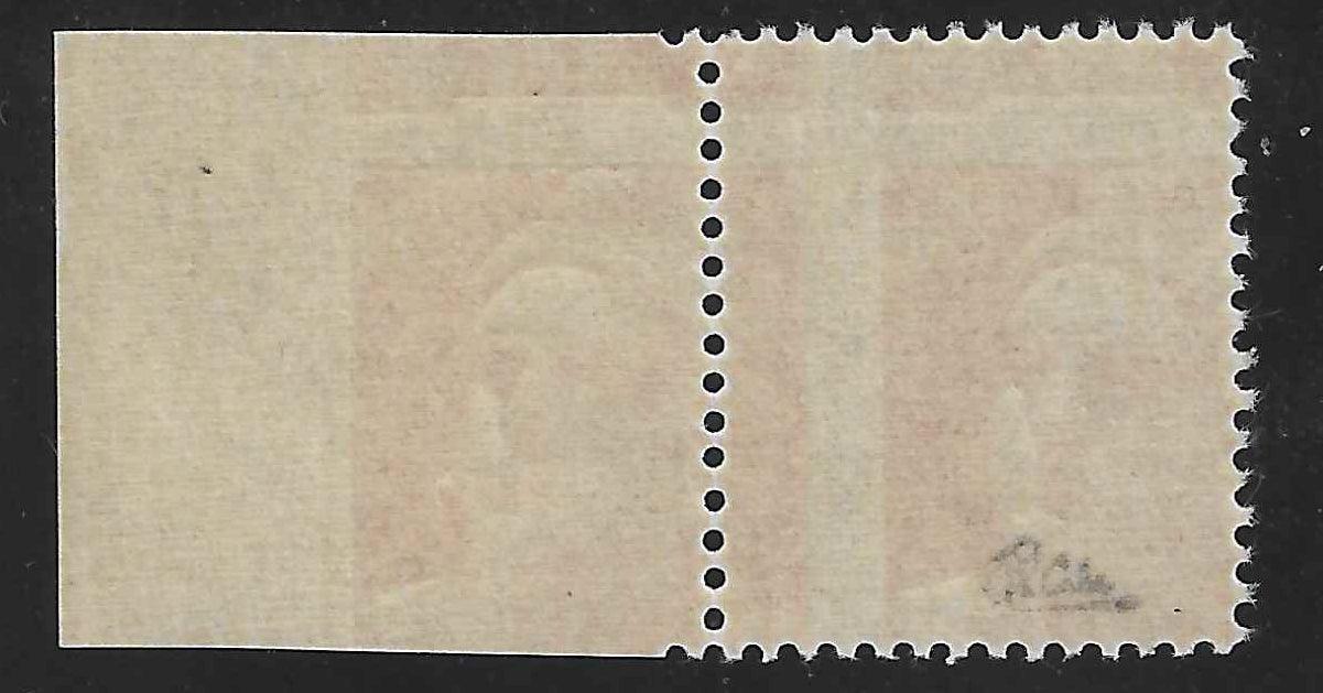 Superbe paire du n°714. Piquage en croix formant timbre non dentelé tenant à dentelé. Neuve avec gomme d'origine sans charnière. Très belle variété.